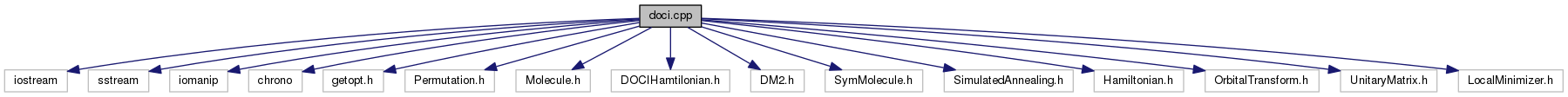 This is an exact DOCI solver by means of a lanczos solver. We build the Hamiltonian and store it as a sparse matrix (in Column Compressed Format). The Permutation object generates the next basis state on the fly. The Molecule object holds the atomic/molecular integrals to use.